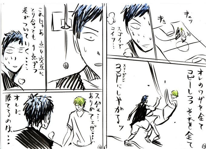 漫画家 高橋一郎 黒バス由来のキャラ紫間と緑原が出演する漫画 おいしいコーヒーのいれ方 応援中 黒子のバスケreplace Plus 1巻 6月4日発売 発売記念宣伝用イタズラ書き漫画9 11 Http T Co Eb6svmghes